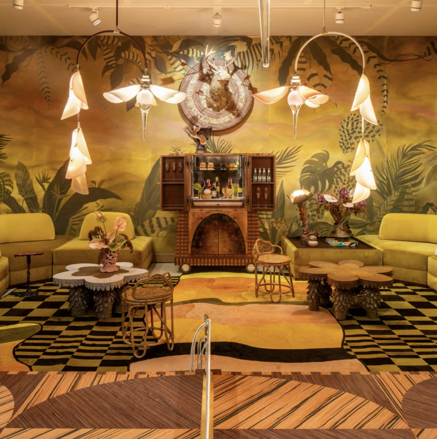 What stands out most in Miami is the sense of play, experimentation and boldness - a city unafraid to embrace colour, character and the imaginative edges of craft. At Art Basel Miami Beach, Moniomi presented an immersive, nature-inspired room display for the Chubb VIP lounge, complete with hand-painted wallpaper, custom furniture and carefully considered lighting, all elevated by a daring palette of olive greens and golds that captured a richly botanical, Miami-infused essence.